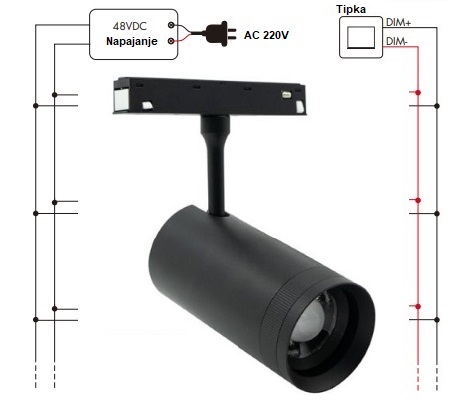 Tračni reflektor sa promjenjivim fokusom. Odličan odabir za naglašenu rasvjetu u stambenim i komercijalnim prostorima. Osim kontrole svjetlosnog snopa reflektor omogućuje jednostavnu kontrolu intenziteta. Upravljanje je moguće Tipkom spojenom na kontrolni ulaz; jednostavno i jeftino rješenje. Na istom ulazu je moguće upravljati digitalnim DALI signalom sa pojedinačnim adresiranjem svjetiljki.